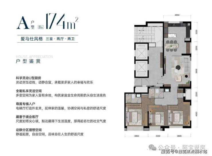2. 174㎡三室:面面俱到却难逃“尺度陷阱”的主力军