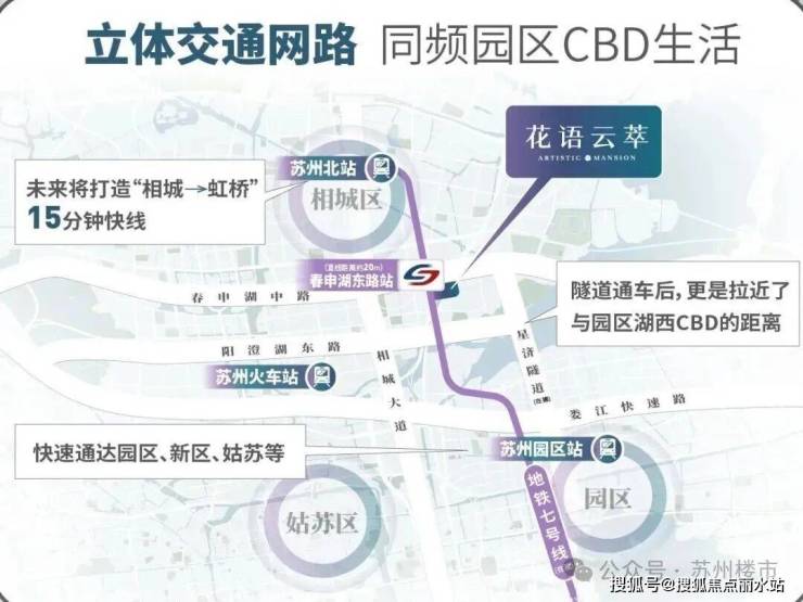 未来阳澄湖星济隧道(预计2027年通车)通车后,到湖西的时间还能再缩短,真正实现 “工作在园区,生活在花语”。