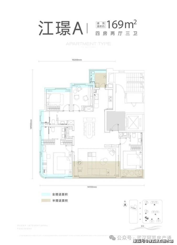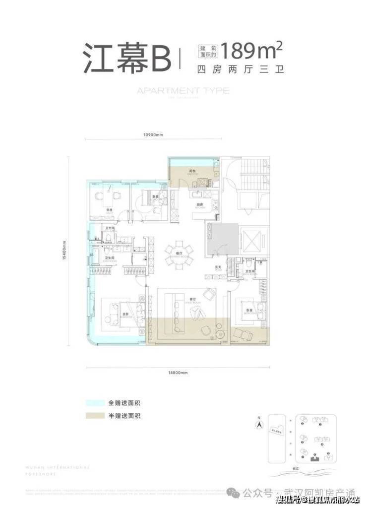 项目一期包含7栋住宅,北区1-2栋,南区3-7栋,其中5-6-7栋(主推169-189㎡)位于项目最南端,可以一线无遮挡看江。