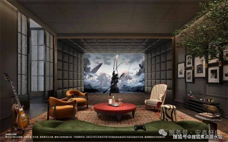 下沉式会所包含私宴厅、影音室、艺术书吧、健身房等空间,还有四大主题架空层泛会所,同时依托保利文化资源,打造瑰丽艺术CLUB·圈层社群,满足业主高端圈层的社交需求。