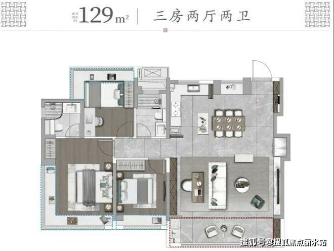 建面约129㎡:边户,三室两厅两卫,餐客厅LDKG一体+南向面宽长约13.4m,客厅开间长约6.4m,同面积段内罕见大尺度,主卧及北次卧270°观景飘窗,又一次遥遥领先了!