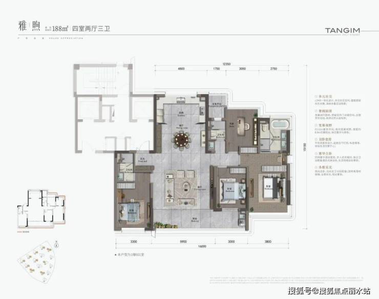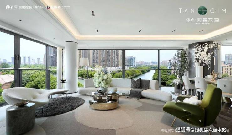 承袭“天字系”高阶改善的豪宅基因,取法泰国曼谷安缦酒店设计精髓,以弧形元素+连续横向线条的变化,描摹建筑黄金比例。