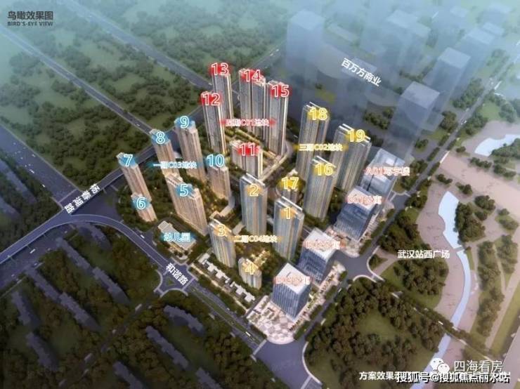 首开华侨城 东湖金茂府总占地面积约11.15万方,总建面约50.8万方,总容积率4.55,总户数2909户,包含四期住宅和1所幼儿园,几栋公寓及写字楼。C01地块规