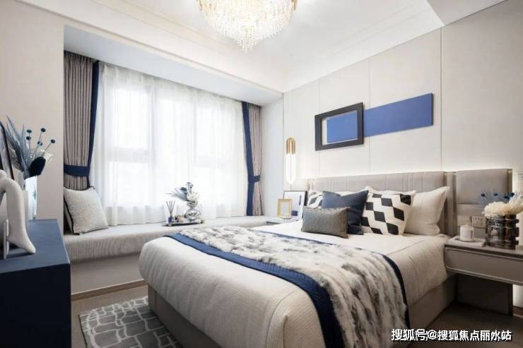 110㎡户型打造了三室两厅两卫,两个南向卧室都带飘窗,中间镶嵌着大横厅外接阳台,把视野优势利用到了最大化,主卧自带一个步入式衣帽间,妥妥是豪宅般的享受。