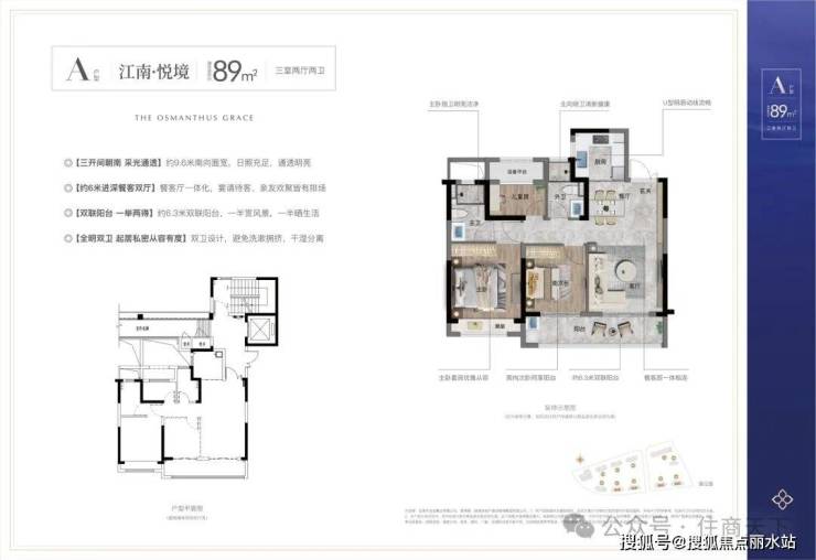 89㎡户型:三开间朝南、双联阳台、双卫生间