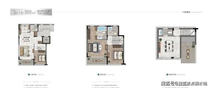 楼盘总共三种面积段,建筑面积约180㎡、188㎡、195㎡,下叠地下一层地上二层带花园,上叠包含露台共3层楼。