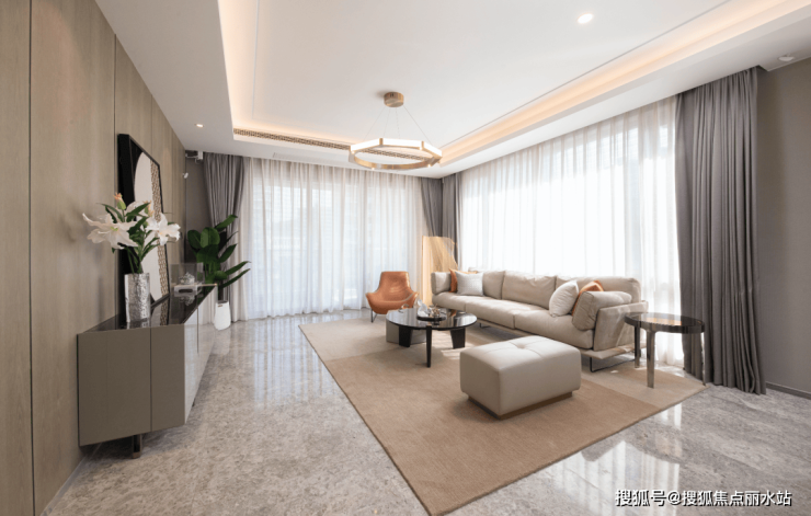 无柱式设计的开放客厅,让墅品的尺度进一步拓展,纵享生活的超级空间,满足对生活意趣的所有想象。