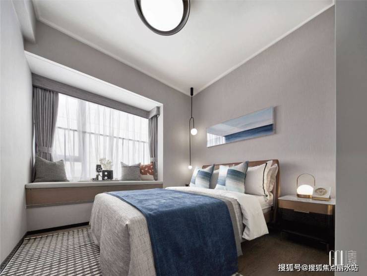客卧是另一番雅致平和的景象,设计师提取了来自海洋的色调,让低调的美感充盈在每一个角落。