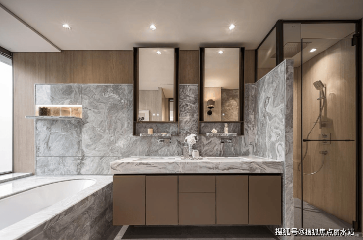 卫浴系统采用德国唯宝的艺术台盆、高仪的恒温花洒、卡德维的浴缸,这套组合常见于巴黎丽兹酒店;