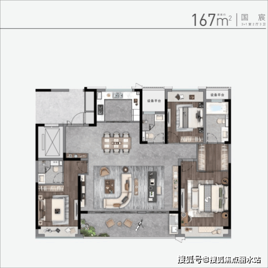 建筑面积约166㎡ 3+1室2厅3卫
