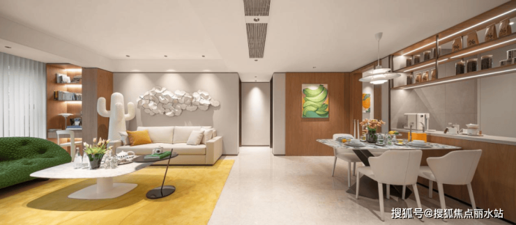 充满活力和色彩的软装,搭配简约而现代感的硬装,共同构建独特氛围