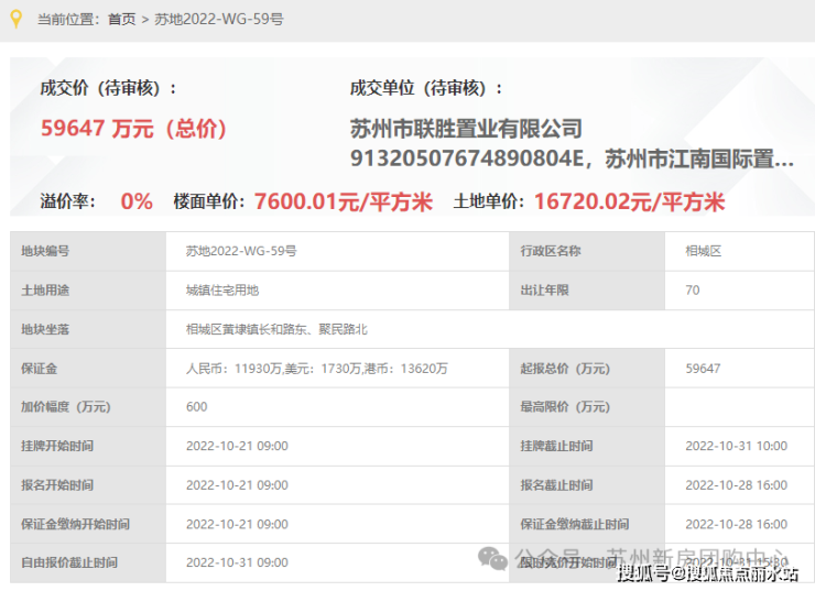 青云台,即联胜&江南国际59号地块,位于相城区黄埭镇长和路东侧、聚民路北侧,2022年10月由苏州市联胜置业有限公司&江南国际联合底价竞得!成交总价59647万元,成交楼面价7600元/㎡,溢价率0%。