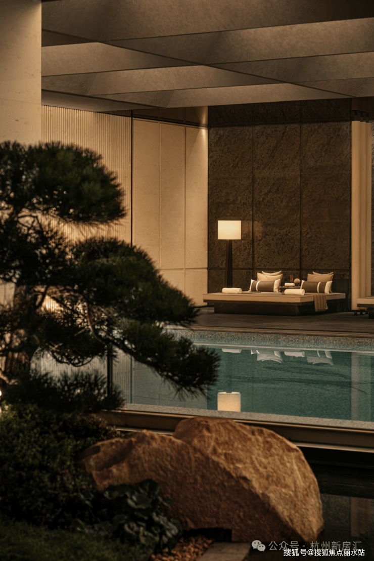 该有的下沉庭院、会所空间、恒温泳池、健身房、私宴厅等场景,松川境都有了。别人没有的「身处繁华,心如月满松枝」的山水意境,松川境也有。