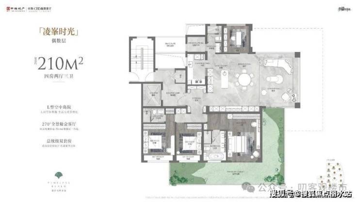 城央花园观景台,270°环幕全景舱,约64㎡客餐厨一体化,南向总统级双套房,得房率约109%-112%