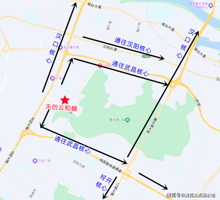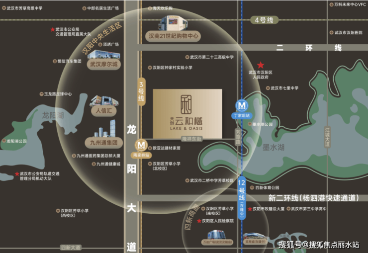 天创云和樾位于汉阳二环旁,王家湾板块,步行可达3大地铁站,紧邻墨水湖、龙阳湖,还有成熟配套环绕,外部价值吸引力拉满。