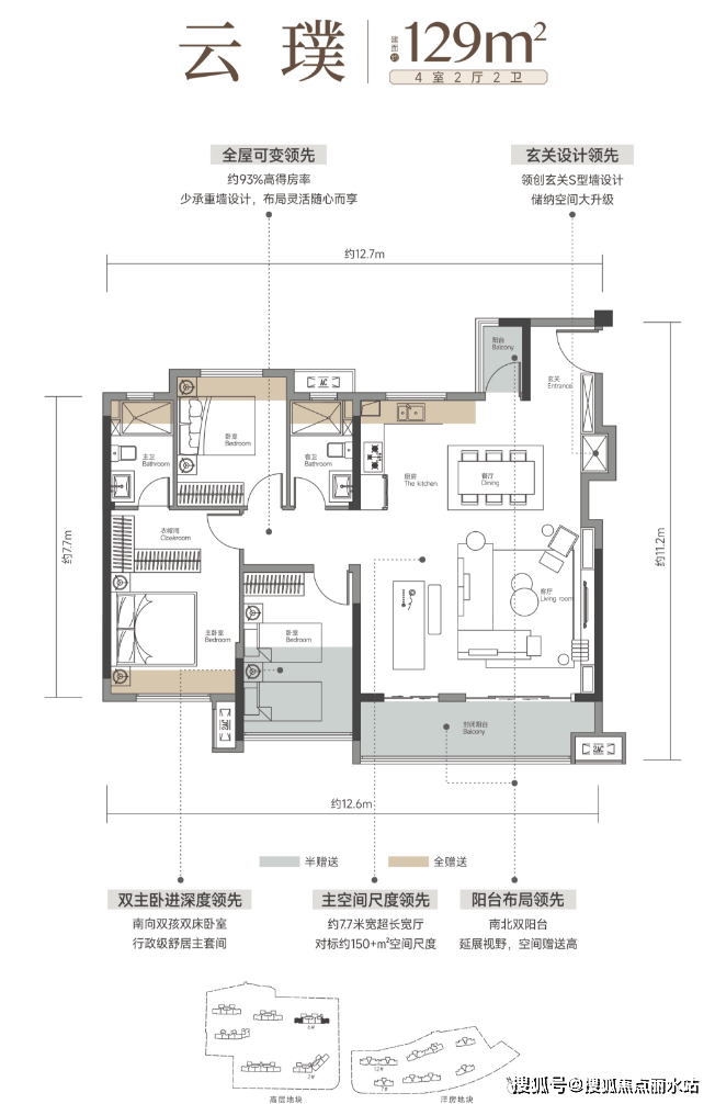 天创云和樾,就完全做到了:不仅有一抢而空的洋房,甚至在高层地块拿出极为优质的楼栋做了大量建面约103平的小户型,且还有部分房源是南北通透的边户。