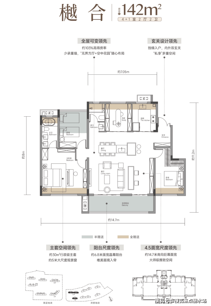 除了上文介绍的建面约103平小户型之外,还有建面约117平户型可做四房,建面约129平四房可享独梯独户以及建面约142平洋房。不仅房源面积丰富,几乎可涵盖各类购房需求,且各个户型设计都非常经典。
