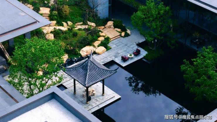 内部,约6400㎡超级中轴——社区中央公园,以中式园林为造园理念,通过精巧的设计,将整个小区内园林在空间上划分为艺术馆式洄游水院、小梅岭和绿林间三大层次共六大景观组团,让“人文、秩序、自然、生活” 有机结合,打造可游可居的沉浸式园林。