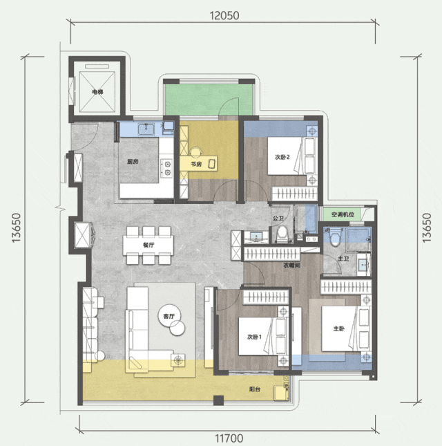 走进室内,南向3.5开间、约11.7米,采光面升级拉大,实现了室内大采光,自然通风性更好,尺度与动线真正做到了大中有序,满足更高品质居住需求。