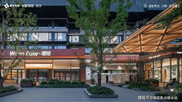 外部,项目街角约10000㎡樱浪公园以“东湖樱花园”为蓝本,植入武汉人对东湖认知中最为突出的樱园,应用大量樱花和名贵树木造景,十大景观组团如画卷般依次展开,拥有更大的包容性和更多的可能性。