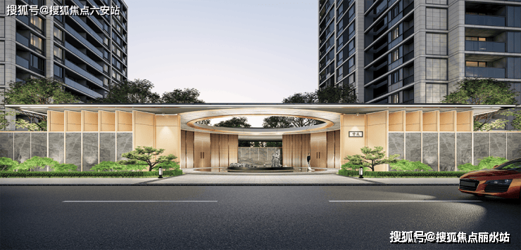 汲取四季酒店设计精髓,于社区主入口打造豪华酒店大堂式归家设计,以迎宾落客区--会 所式大堂--摩尔会客厅的渐进式排布,勾勒出入境--入画--归影的三重归家仪制。落客区采用酒店泊湾式环岛,尊崇与仪式融贯一体;会 所式大堂融入“会客厅”理念,空间纵深开阔,给予业主更多的舒适便利;摩尔会客厅叠石翠景,两侧灵动水系映泉满堂,一步一景,各有天地。