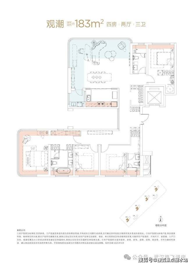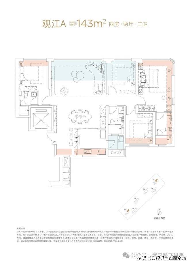 建面约143㎡是经典3+1居室户型,户型面宽可达市面少见的约16.3米,创新设计可变弹性空间,约9米宽的大横厅设计,实现更多生活场景可能。