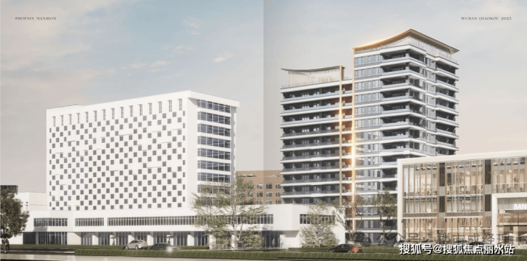 风潮建筑美学:以公建化立面,勾勒出朗俊挺拔的城市剪影铝板与玻璃幕墙交织,随着光影变幻,呈现深邃质感独特的弧形顶部设计,柔化了城市天际线宛如一座精心雕琢的现代雕塑不仅为居者营造美境,更致力于刷新汉口芯的城市界面。