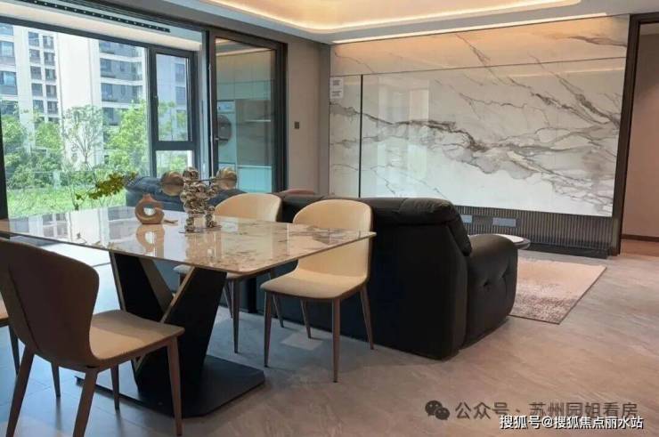 精装交付,标配新风、中央空调、地暖三大件,客厅岩板背景墙也是交付标准。
