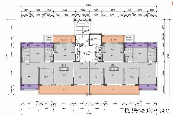 全系四房起步,1梯2户设计,4房2厅3卫