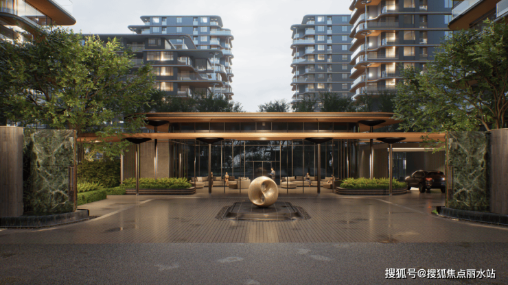 城发投·瑞璟春和主出入口处实现全人车分流,作为城市封面生活代言,城发投·瑞璟春和溯源传统精髓,糅合现代人性化需求,将自然美学与实用功能充分融合,通过酒店式大堂—风景连廊—宅间庭院聚落/全龄生活架空层—首层入户大堂—地下精装入户大堂五重归家礼序,营造尊崇归家感受。