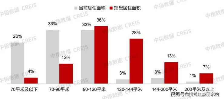 理想居住面积:超六成受访者倾向选择90-144平户型