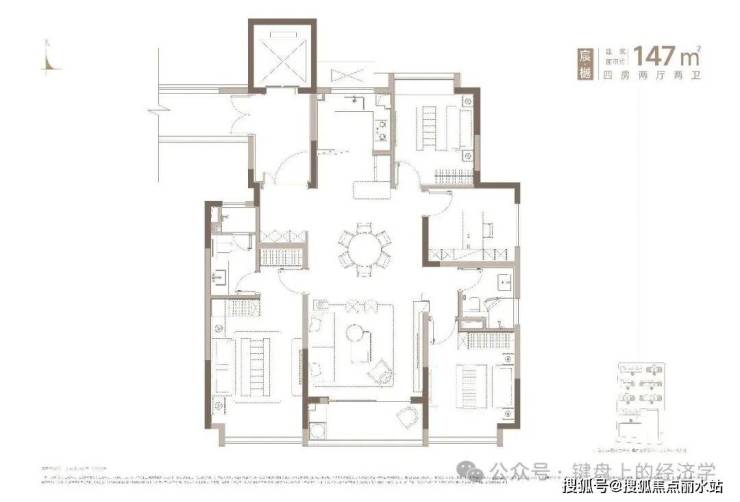常规的140平,无论客餐厅、厨房、卧室都被压缩的很厉害,只够勉强居住,而这个147,由于户型原因,不仅做到了1梯1户,它的空间尺度之宽敞,绝不亚于那些160平的房子。