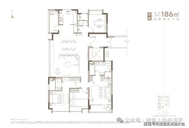 179/186户型,是整个小区中真正的楼王,不仅是纯的1梯1户,客厅、主卧、厨房甚至次卧都很宽敞,是主城极其稀缺的大平层。