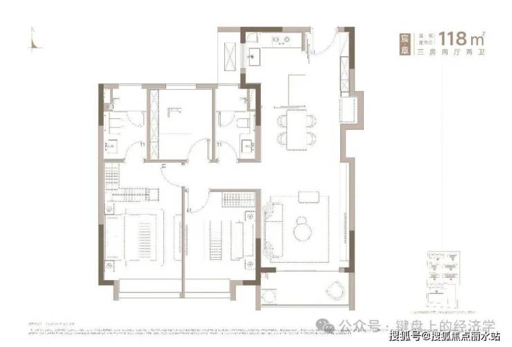 118平,属于一个非常经典的户型,最大特点就是“合适”,无论对于刚起步的年轻人,还是隔壁小区买二套房的老人,它的户型、面积、总价都是再合适不过了,上班方便,户型合理,房贷压力小,这便是南京梦的起点。