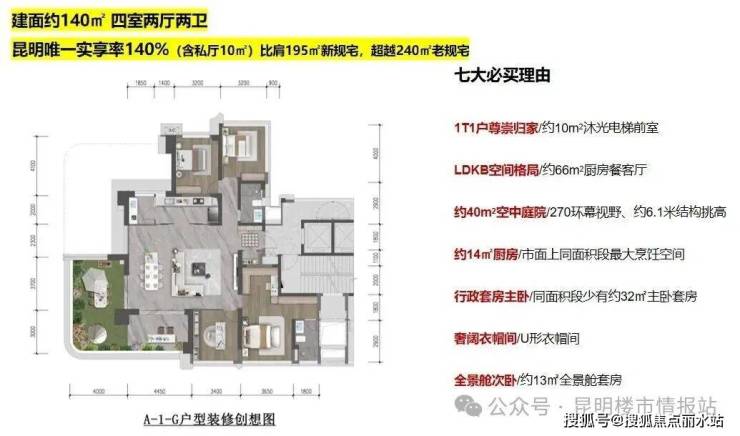 建面约140㎡ 四室两厅两卫,实享140%