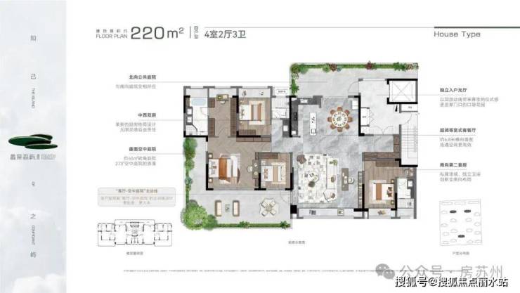 ·产品规划:建面约150㎡、185㎡、220㎡,户均约30-50㎡空中庭院