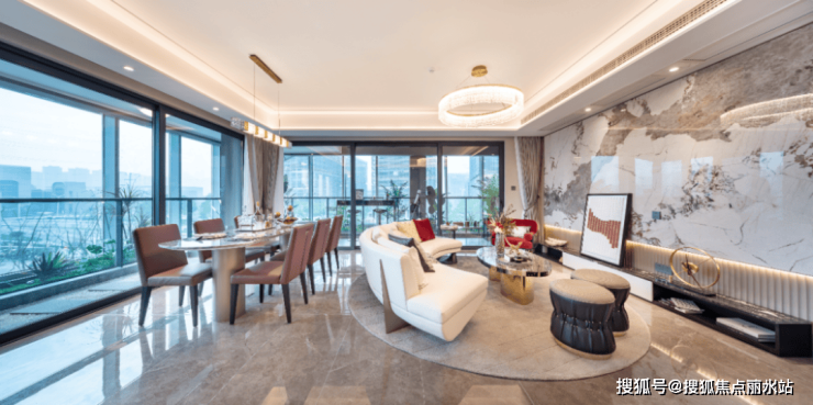 同时,餐客厅一体化设计形成超30㎡的巨厅空间,完全满足改善家庭对于生活品质的追求,特别点赞L型双阳台设计,可以为居住者提供约270°的全景视野,功能与景观的高效兼顾,简直是空间艺术的绝佳诠释。