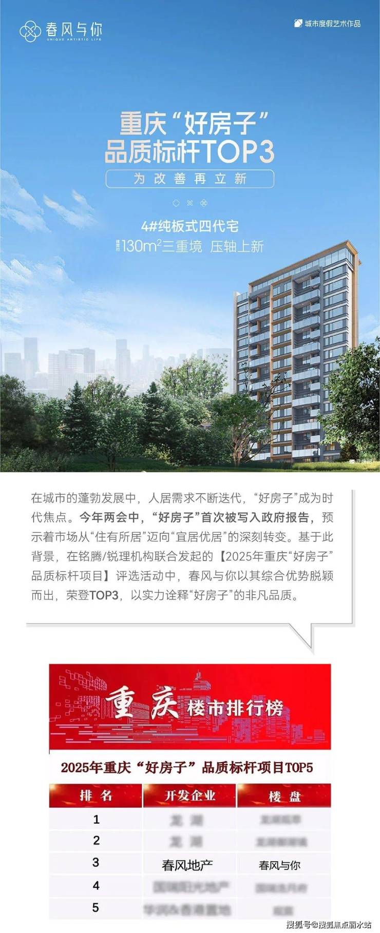 春风与你 | 重庆好房子品质标杆TOP3,为改善再立新