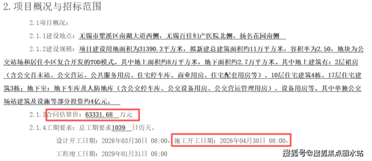 合同估算价:63331.68万元;施工开工日期:2026年4月30日;工程竣工日期:2029年1月31日。