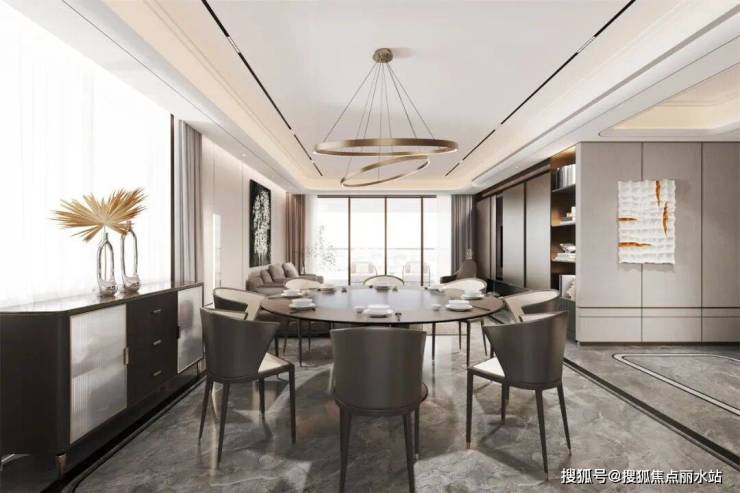 客餐厨一体化的设计,将三个相对独立的单功能空间整合为一个复合型的共享空间,让业主置身任何一处,都可随时与家人互动。