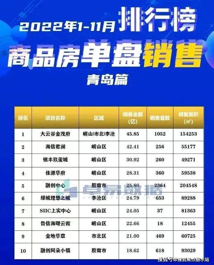 前11个月,青岛卖得最好的楼盘均为高端项目(来自卓易数据)
