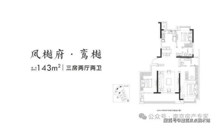 约143㎡三室两厅两卫户型为凤樾府的起步户型。