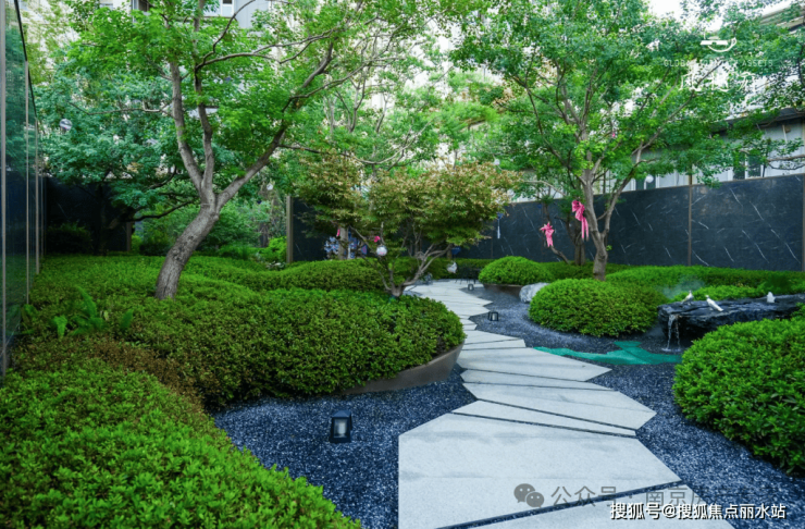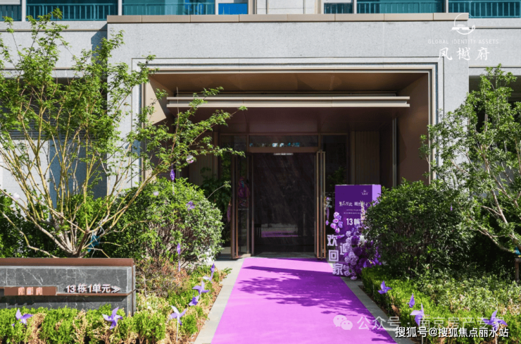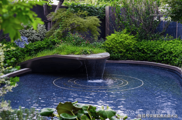大师高定,罗朗景观设计院执笔的云锦艺术景墙,金属“凤樾府”字样,质感中透露着贵气。搭配潺潺水景,更有意境。