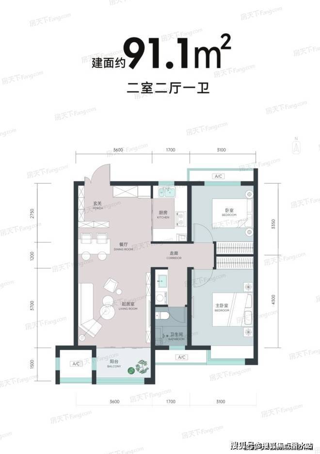 城发投·云华 平层户型·建面/91㎡