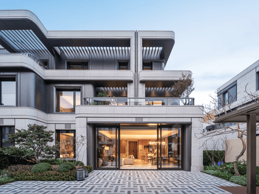 全盘仅规划 176 套可售房源,全部为建面约 200-300㎡叠墅与合院产品,其中合院仅 31 席,纯粹大户型定位直接锁定高净值改善与终极置业人群,保证社区圈层高度统一。建筑采用现代海派风格,以简洁线条、大面积玻璃与精致石材结合,打造兼具国际质感与东方韵味的立面美学,楼间距最大可达 24 米,远超市区同类别墅标准,充分保障每户的采光、通风与私密性。