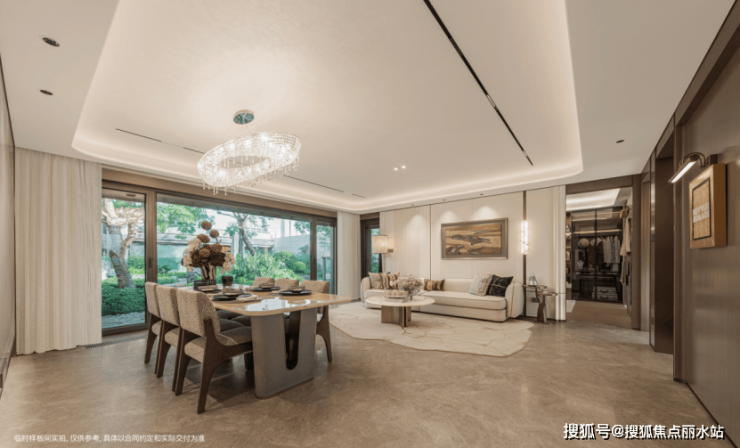 景观方面,项目以“海上第一名园”张园为灵感,打造约1000㎡花镜水庭、下沉庭院、樾下漫步、繁花私园等景观节点。