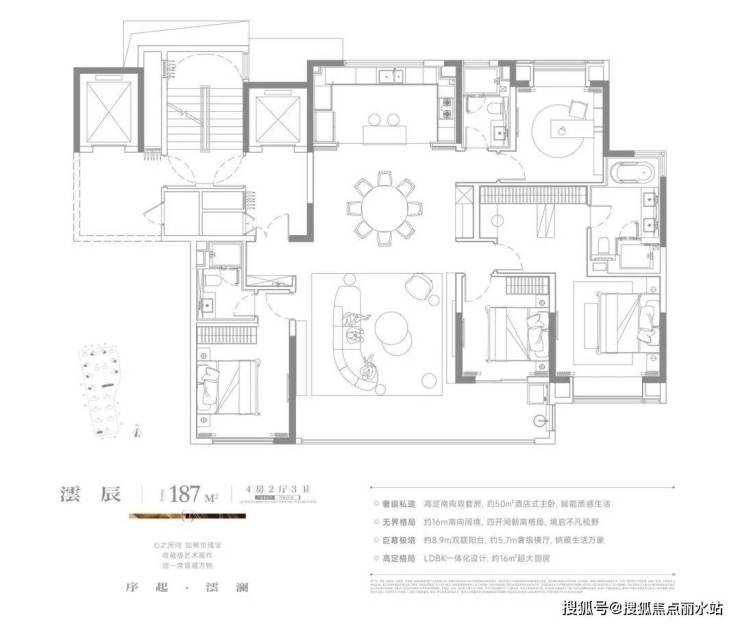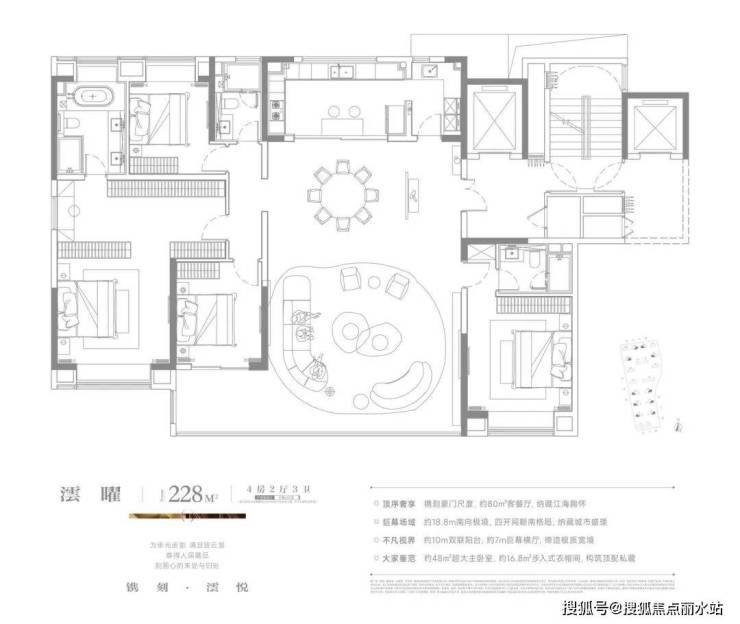 其中,酒店式会所面积达到约3000㎡,包括艺术展廊、行政酒廊、家宴厅、无边泳池等功能区,架空层泛会所空间,集齐茶室、健身房、多功能会客厅等空间。