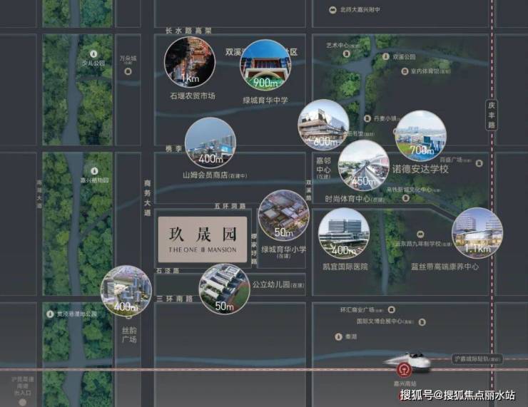 当我们打开双溪湖板块地图,以玖晟园为原点画1公里的圆圈,诞生了双溪湖板块的最佳生活半径。