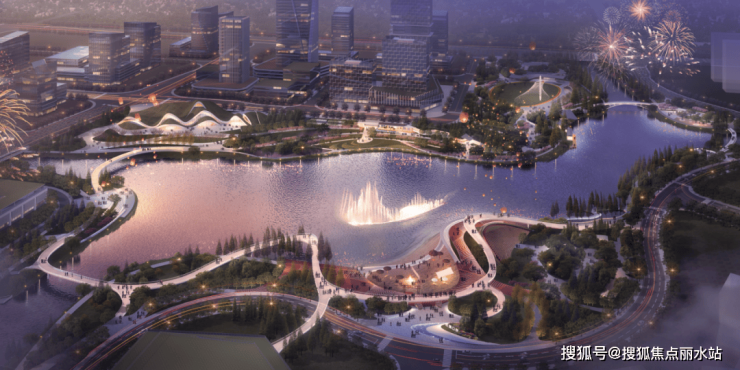 项目一面是百亿市政公建、CBD建筑群所组成的城市繁华,另一面是约855亩的双溪湖城市公园,绵延无边的绿意。