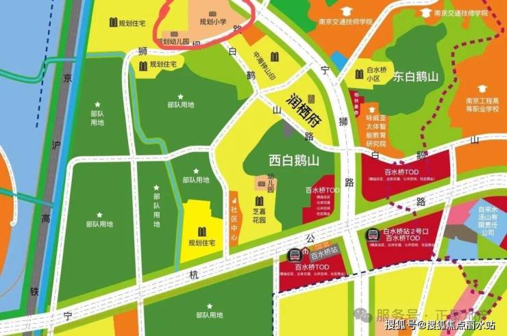 润栖府约2公里范围内聚集城东3大TOD分别是马群TOD、金马路TOD、规划中白水桥TOD(南京一共8大TOD,像南京南站、南京北站、河西元通等)